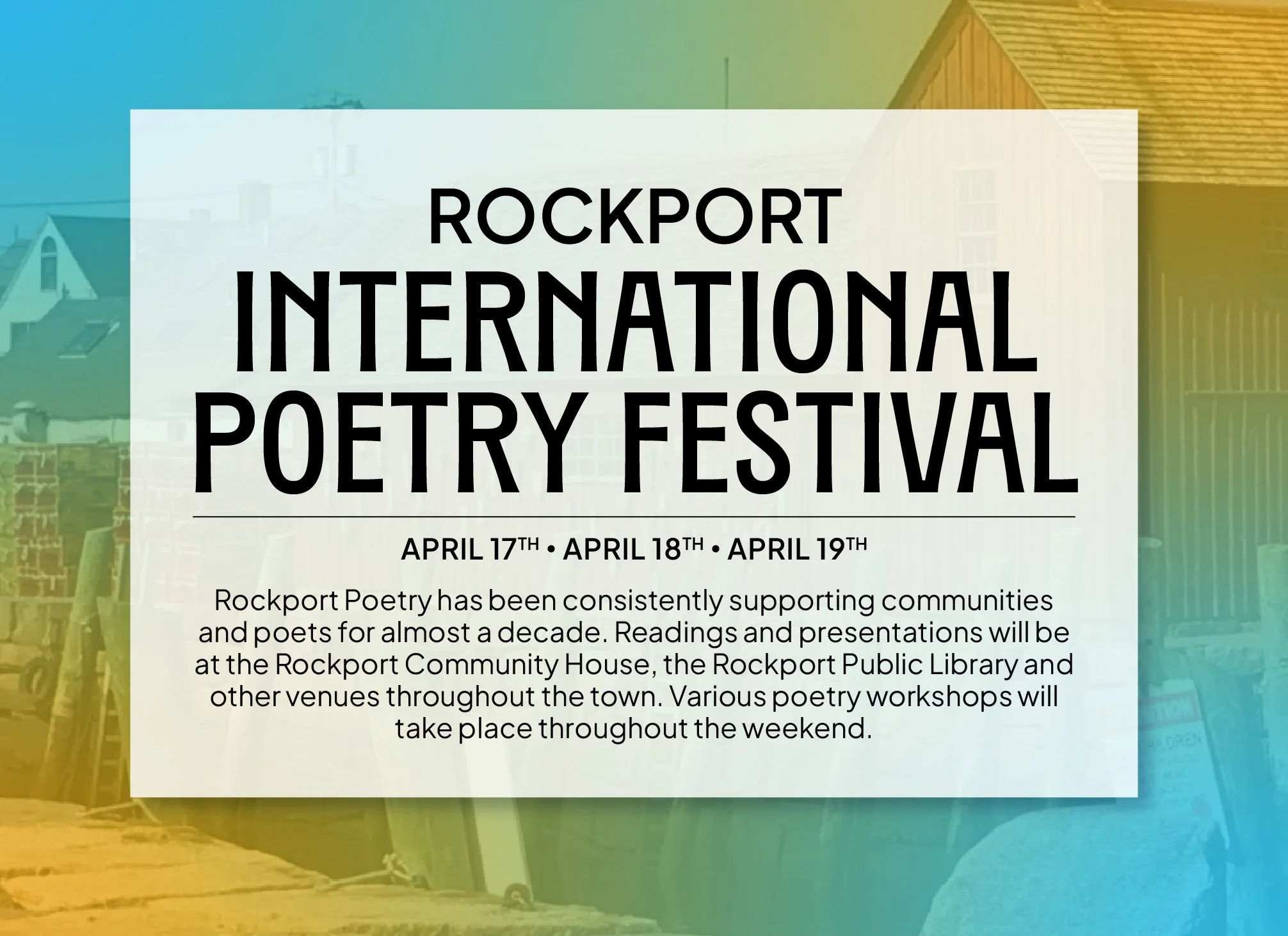 As part of National Poetry Month, we host the annual ROCKPORT INTERNATIONAL POETRY FESTIVAL April 17, 18, & 19, 2026,